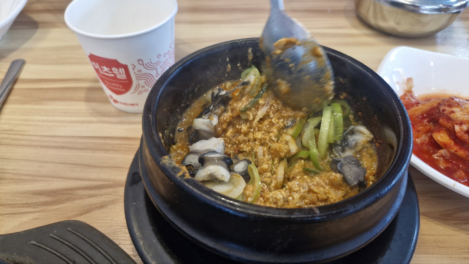 된장찌개는 집된장 느낌입니다. 된장찌개는 매운맛과 고르 실 수 있습니다.