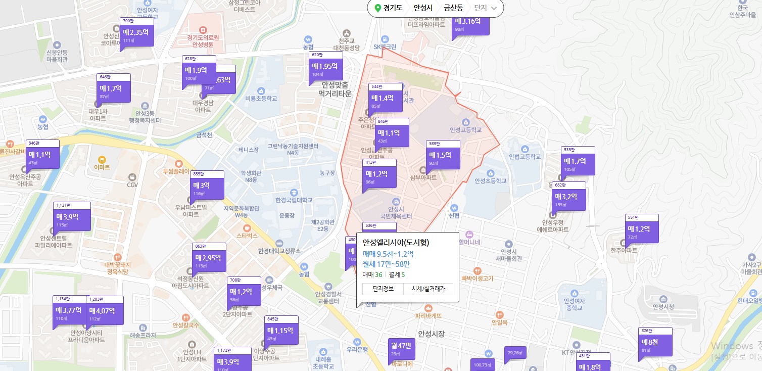 주변 아파트 시세를 보시면 1억초반에 아파트들이 보이시죠
