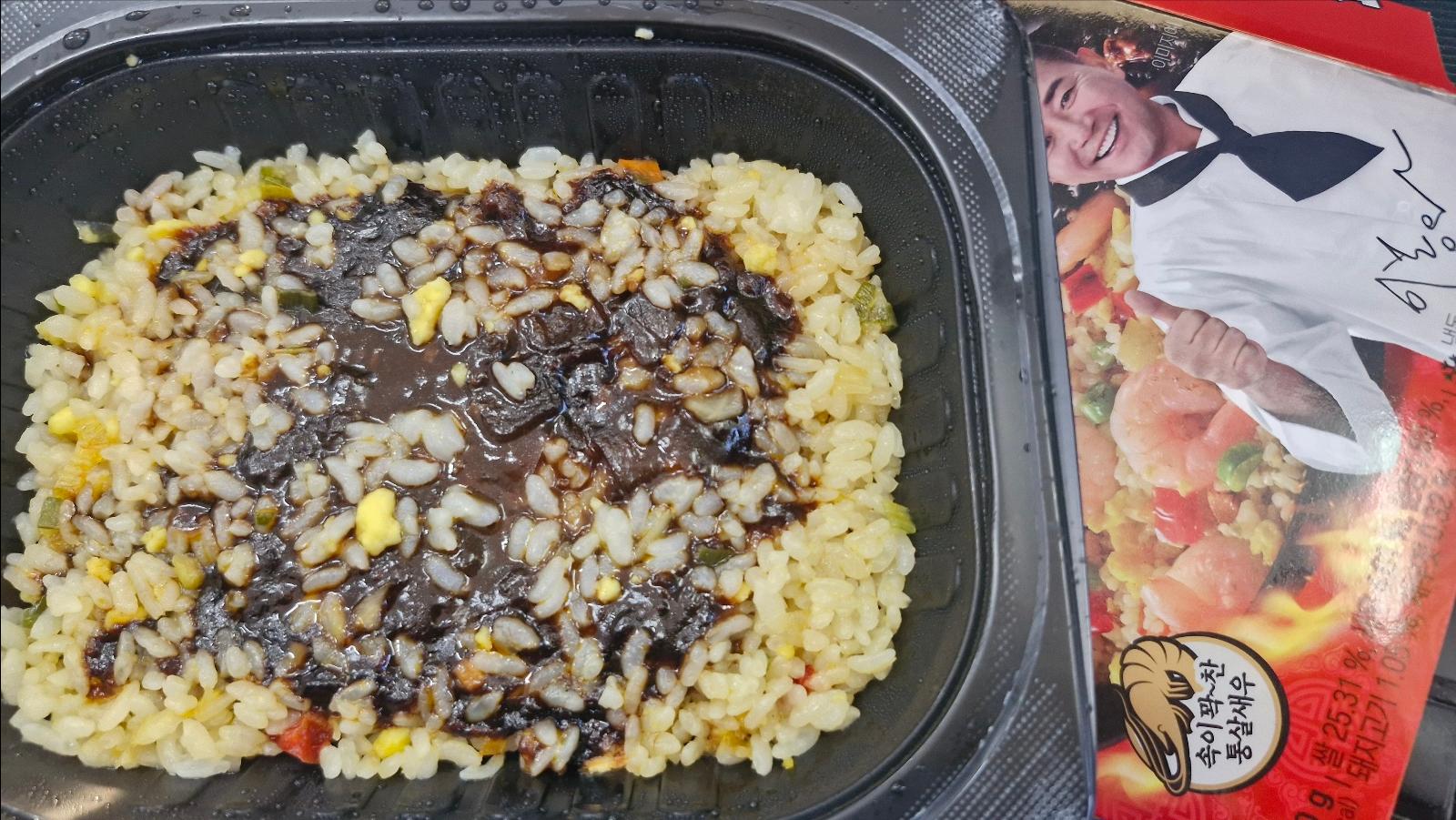 그리고 기존 냉동 새우볶음밥에는 없던 짜장이 들어 있어서 맛과 향이 더 풍미가 좋았습니다.
