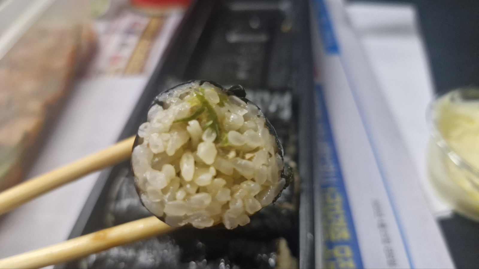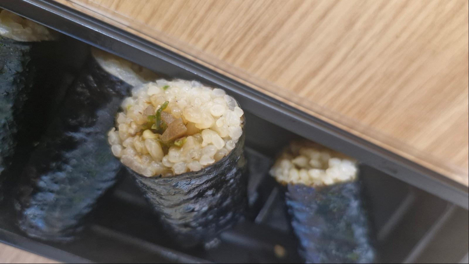 음... 겉모습을 봐서 그냥 고소한 맛에 먹는 심심한 김밥인가 싶어서 맘에 들었습니다.