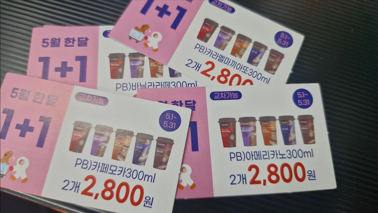 1. 상품명 : PB) 아메리카노, 카페모카, 캐러멜마끼아또, 바닐라라테, 카페라테 300ml