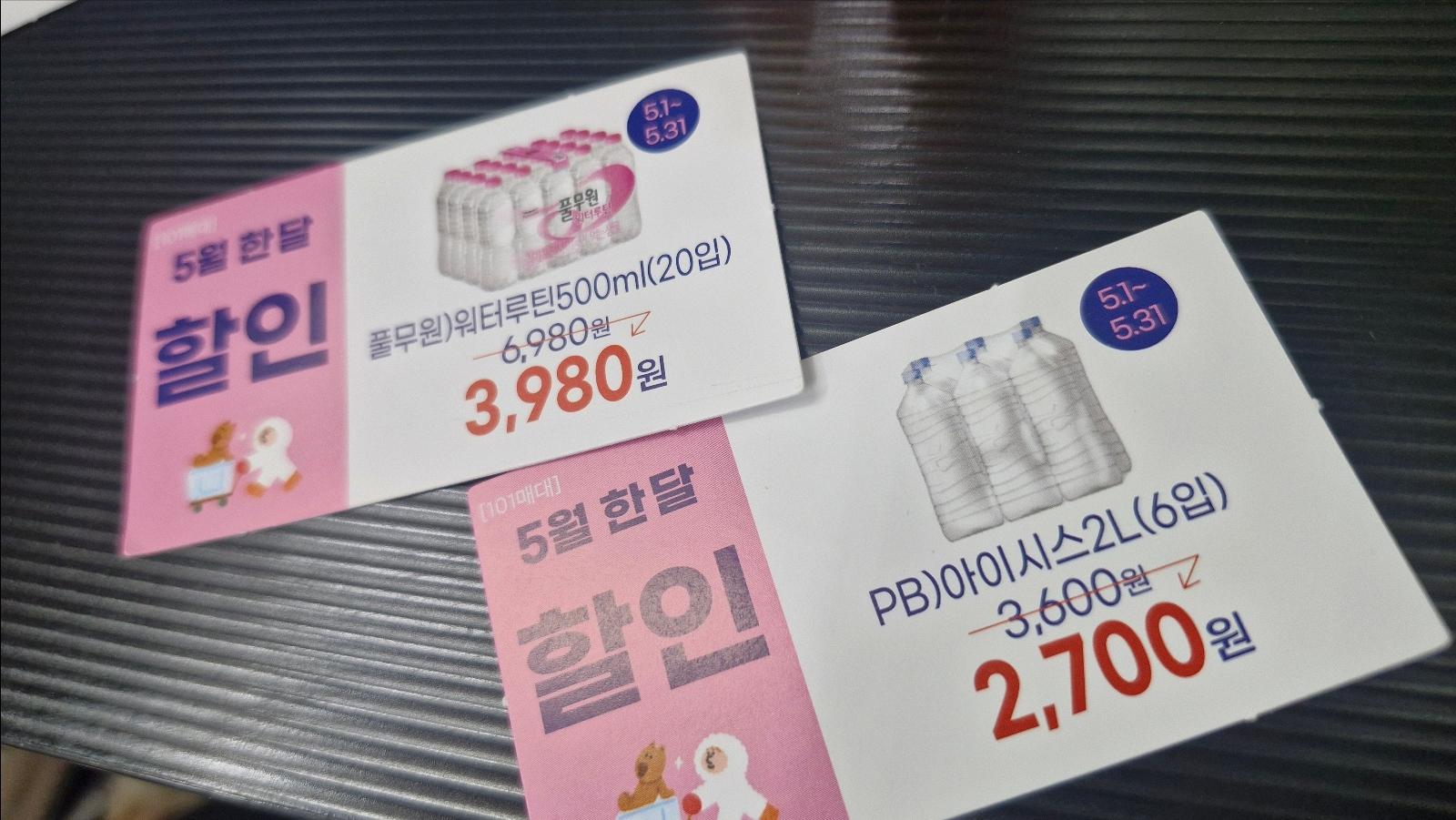 바로 물물물입니다. 아이시스 6입과 워터루틴 20입 짜리 행사 들어갑니다.