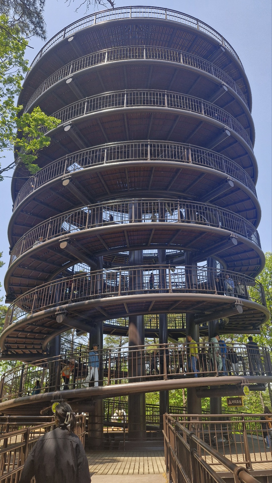 밑에서 본 탑을 올라가는 데크길도 이쁘게 보였습니다.