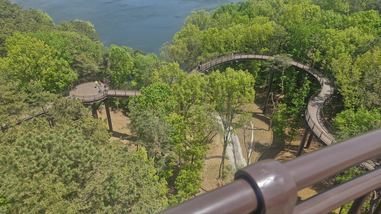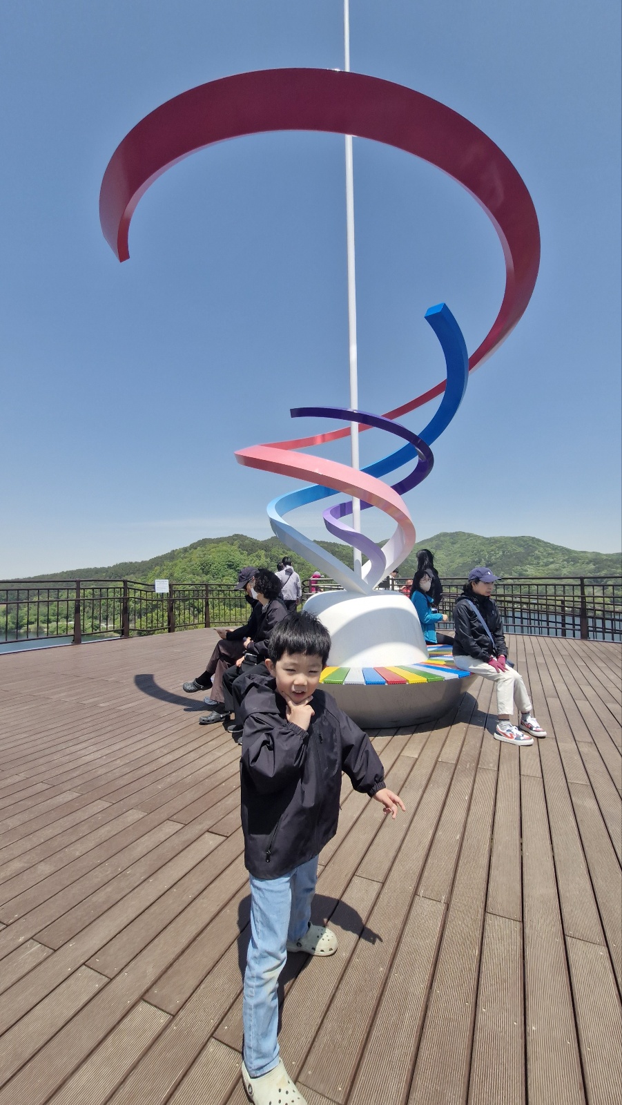 너무 상쾌합니다. 동글동글한 하늘전망대를 따라서 올라가면서 어디에다가 핸드폰을 갔다 놔도 이쁜 그림이었습니다. 사진 찍기 너무 좋은 명소가 될 거 같습니다. 꼭대기까지 올라오면 조형물이 중앙에 있고 바람이 시원하게 불어왔습니다.