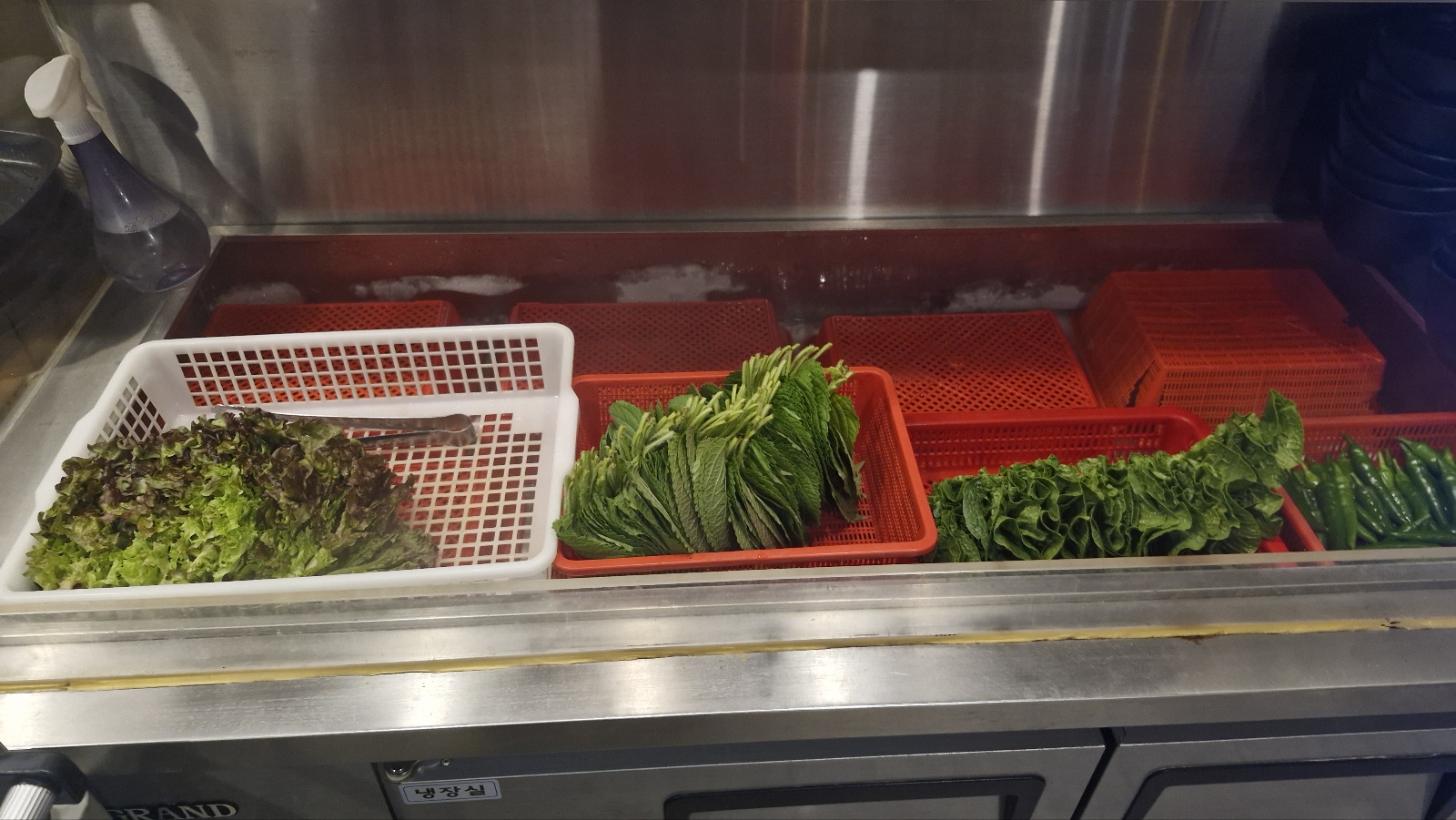 셀프 코너에 있는 야채들도 너무 싱싱합니다. 특히 깻잎향 찐 입니다.
