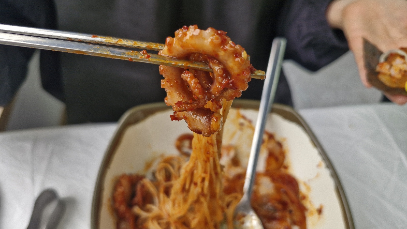 낙지 볶음 중간에 소면이 숨어 있어서 추가 주문 안 하셔도 기본으로 한 덩어리 들어 있습니다.