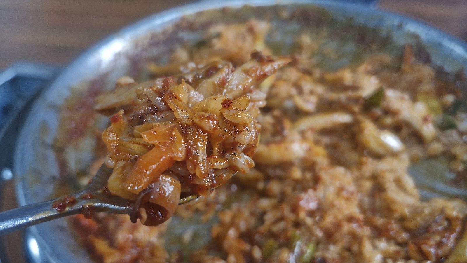 맛은 전체적으로 맵고 좋은데 진짜 오징어 양이 너무 적습니다.