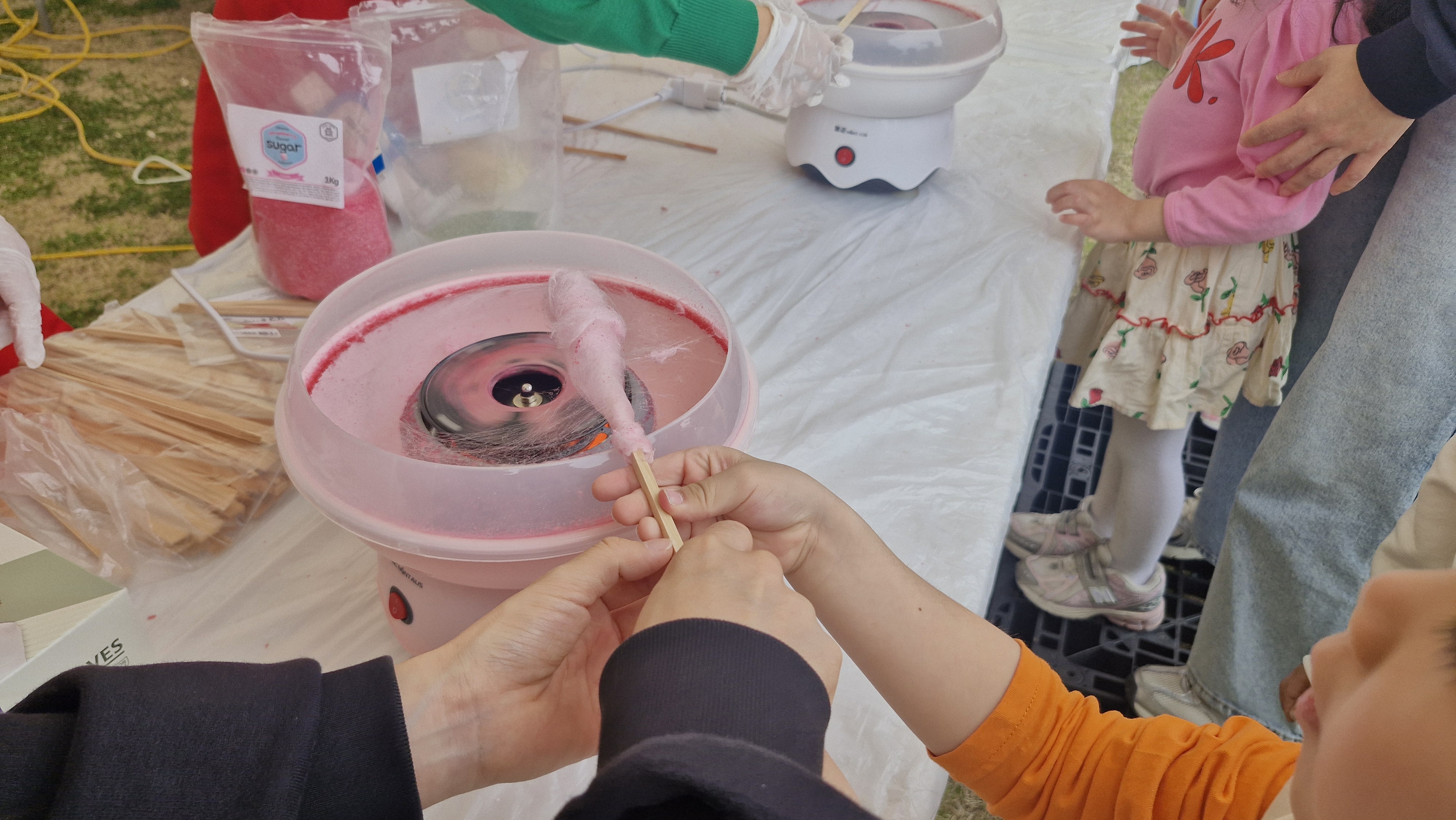 아이들 올라와서 놀 수 있는 행사들을 운영 중이고 밑에서는 악기 연주하시는 분들이 준비를 하고 계시네요