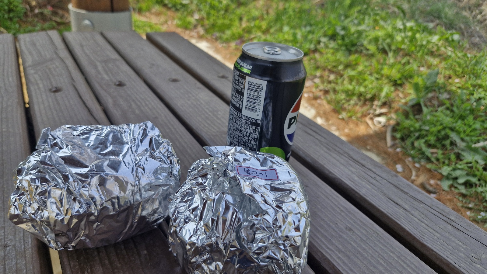 근처에 소풍 온 것처럼 포장해서 즐기면 좋을 거 같은 느낌 있는 옛날 수제 버거입니다.