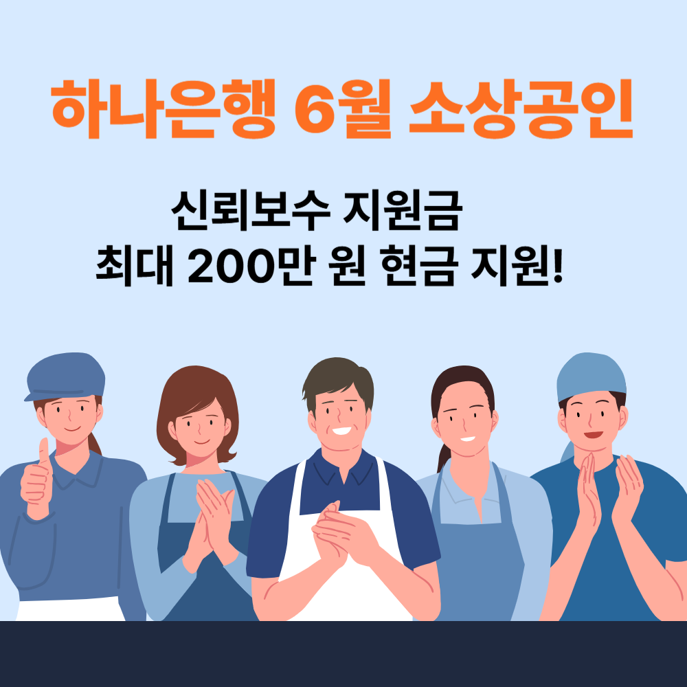 하나은행 6월 소상공인 신뢰보수 지원금 – 최대 200만 원 현금 지원!